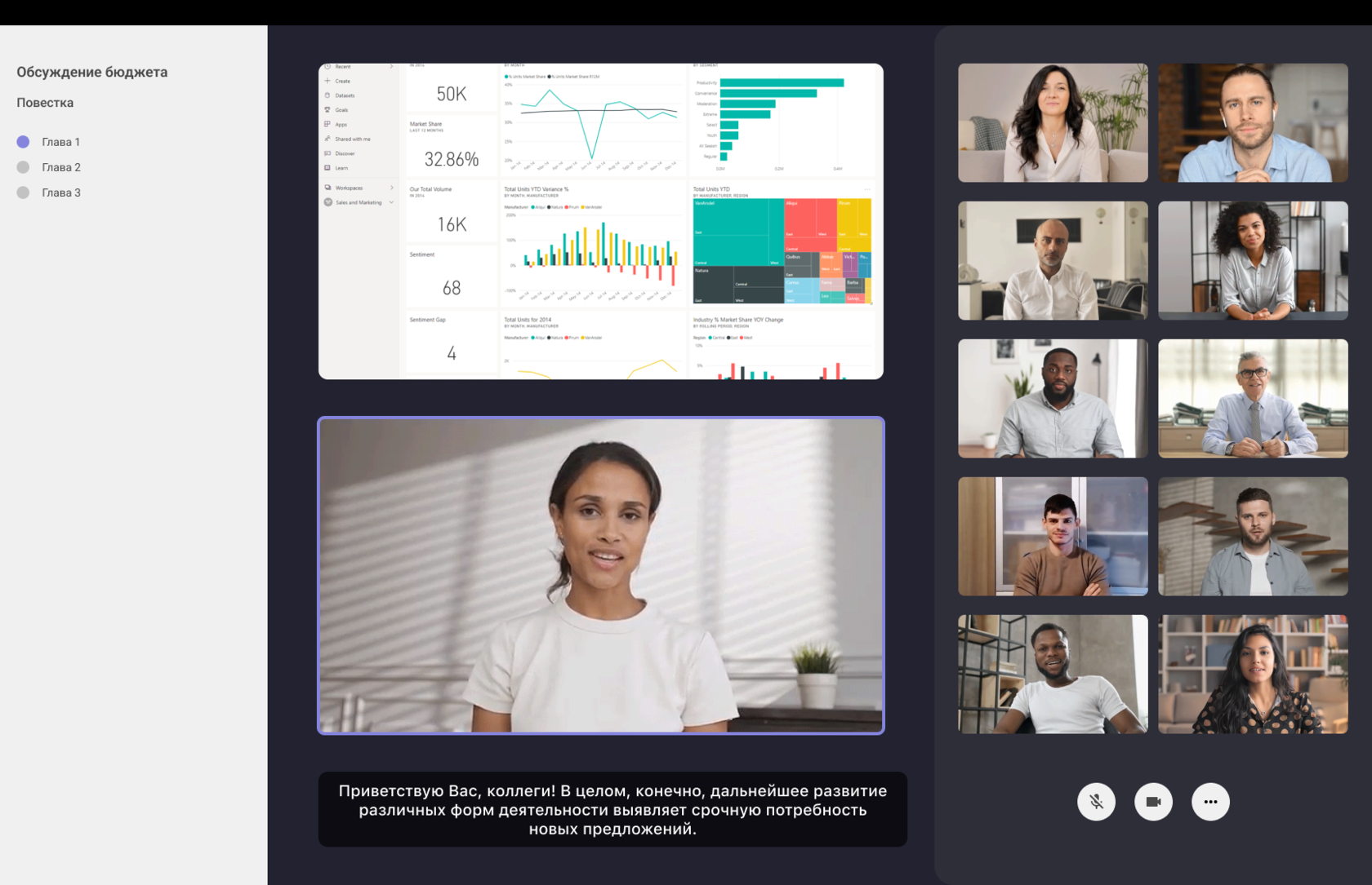До 100 спикеров, до 1000 участников на встречи